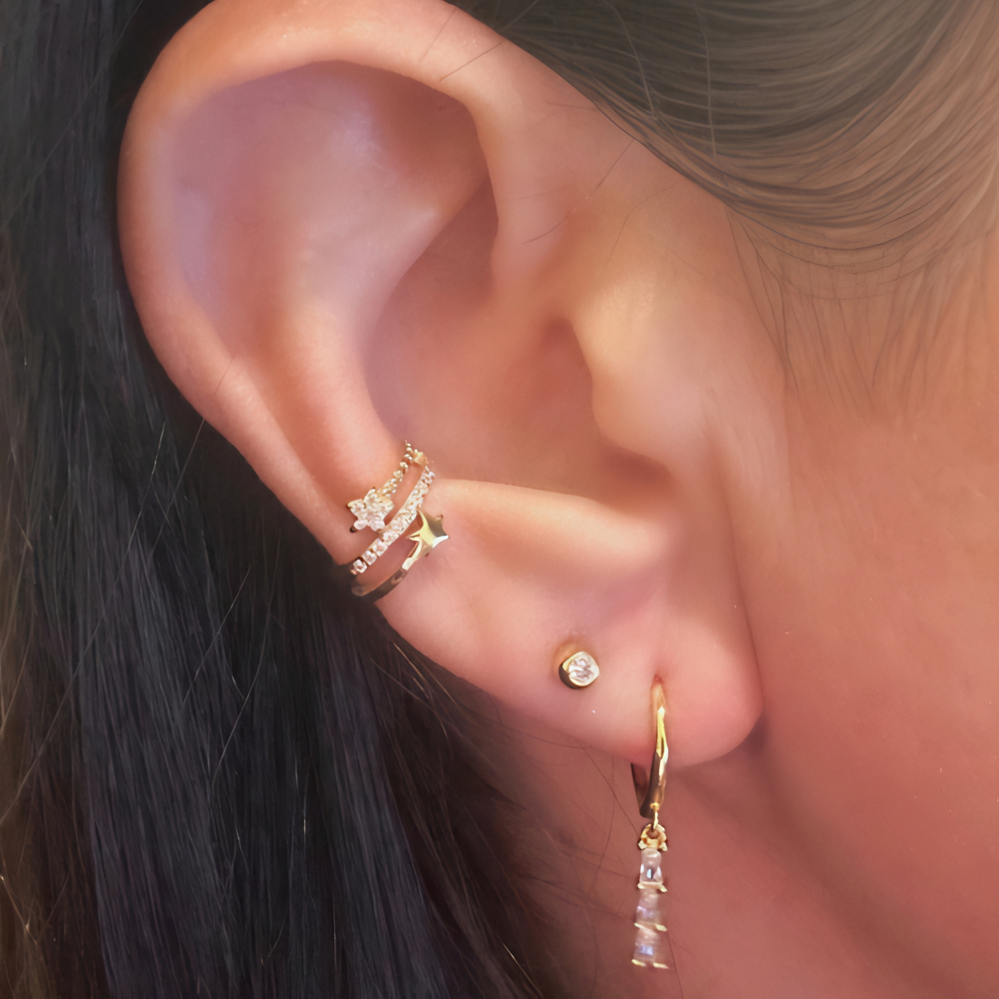 Gold Baguette Dangle hoops