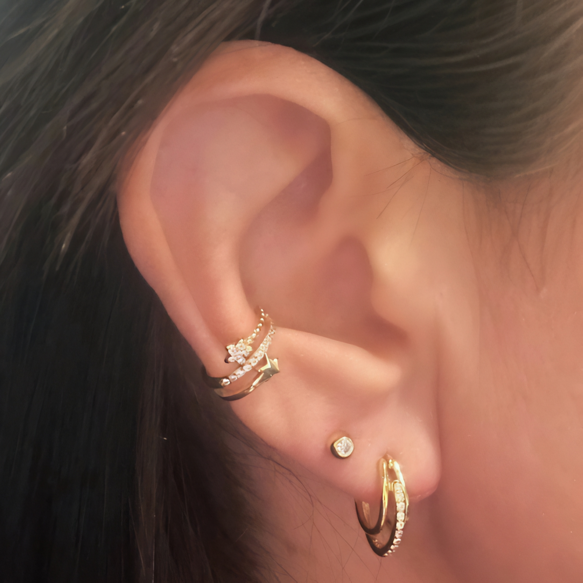 Triple Layer Huggie Hoops